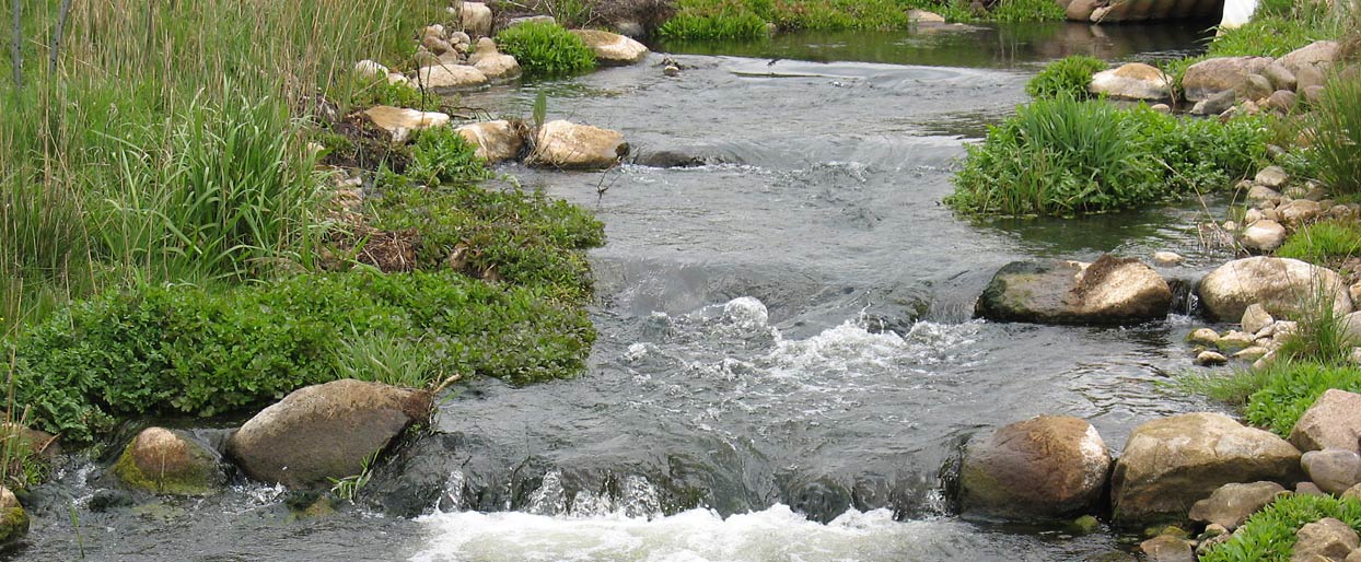Detail: Wehr-Umgehungsgerinne/Fischtreppe mit Hamco-Durchlass in eingewachsenem Zustand während der Entwicklungspflege