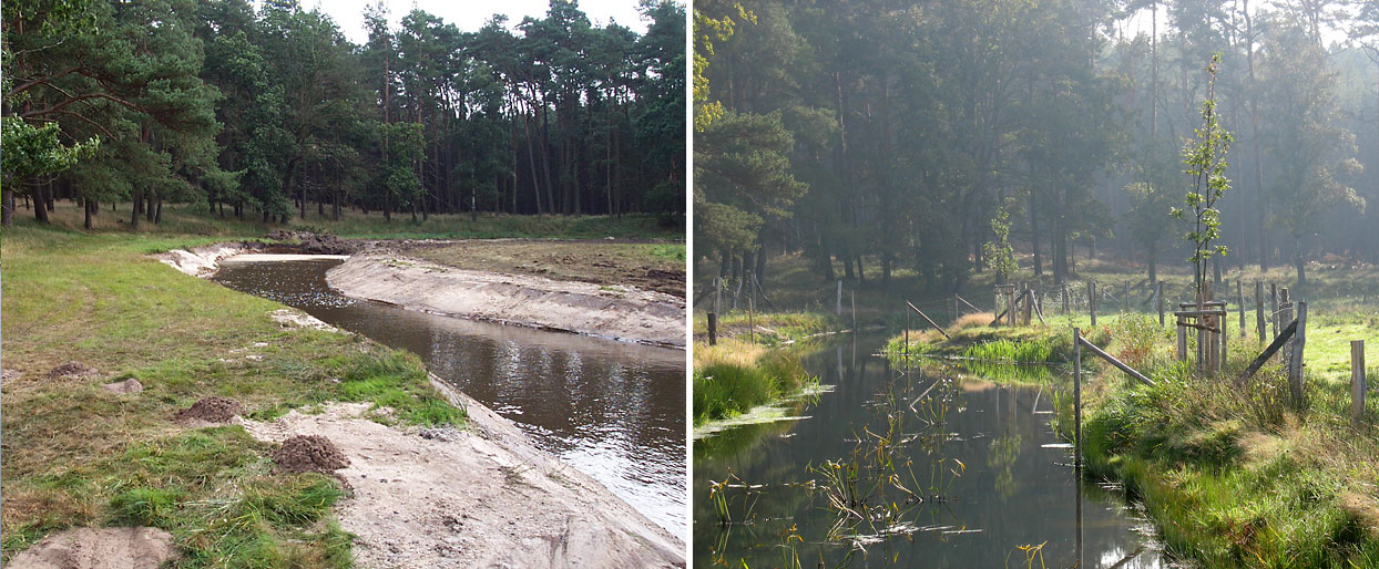 Wiederherstellung und Anbindung von Mäandern, Alt- und Totarmen an das Hauptgerinne der Alten Elde - Mäander während der Entwicklungspflege | Mäander in der Rekonstrukionsphase