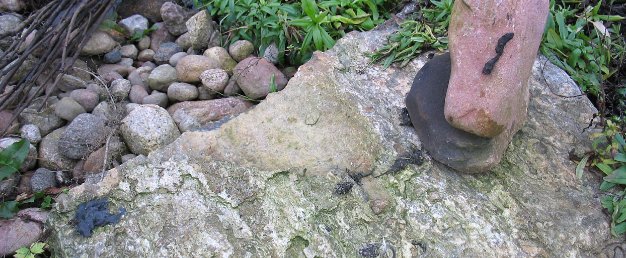 Otterlosung auf Markierungsstein an einer der Fischtreppen, Artenschutz-Monitoring nach der Bauphase